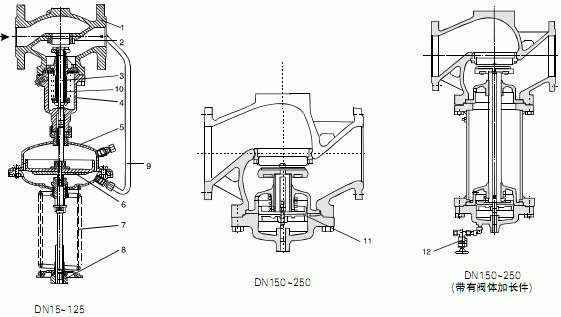 注:该压力设定范围不适用于DN150~200